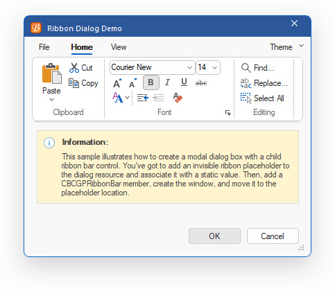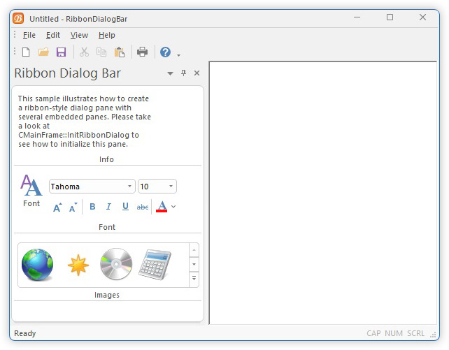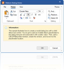 This sample demonstrates how to create the Ribbon Bar on the dialog box.