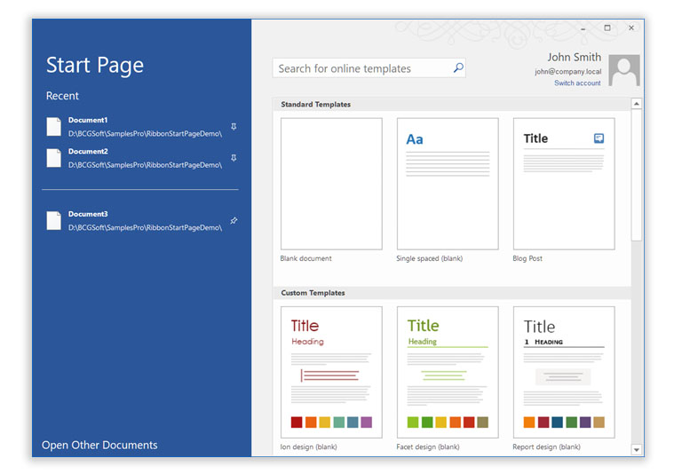 This section contains a set of samples illustrating usage of the Ribbon Control and Ribbon Gadgets in MDI, SDI, and dialog-based applications.